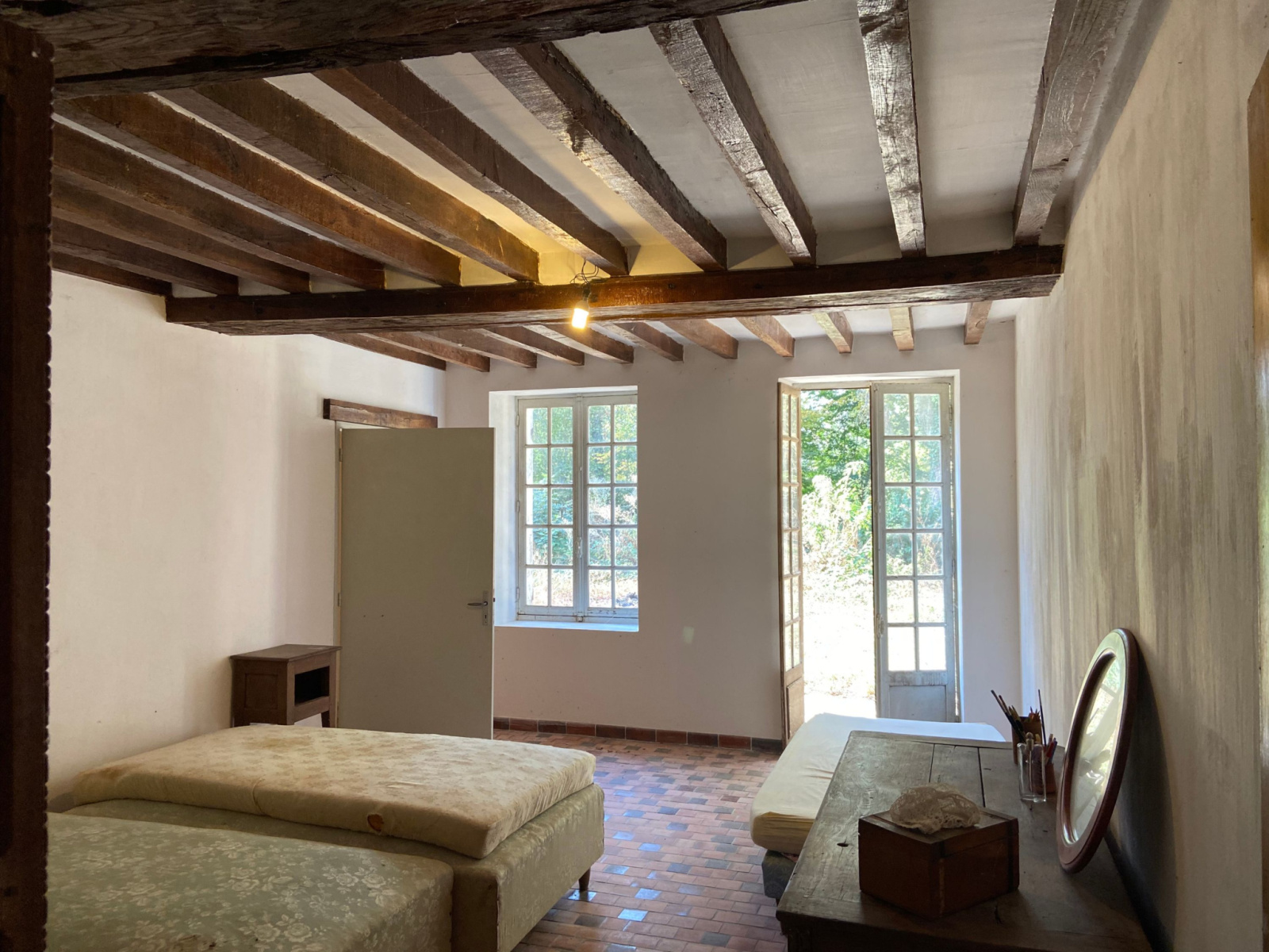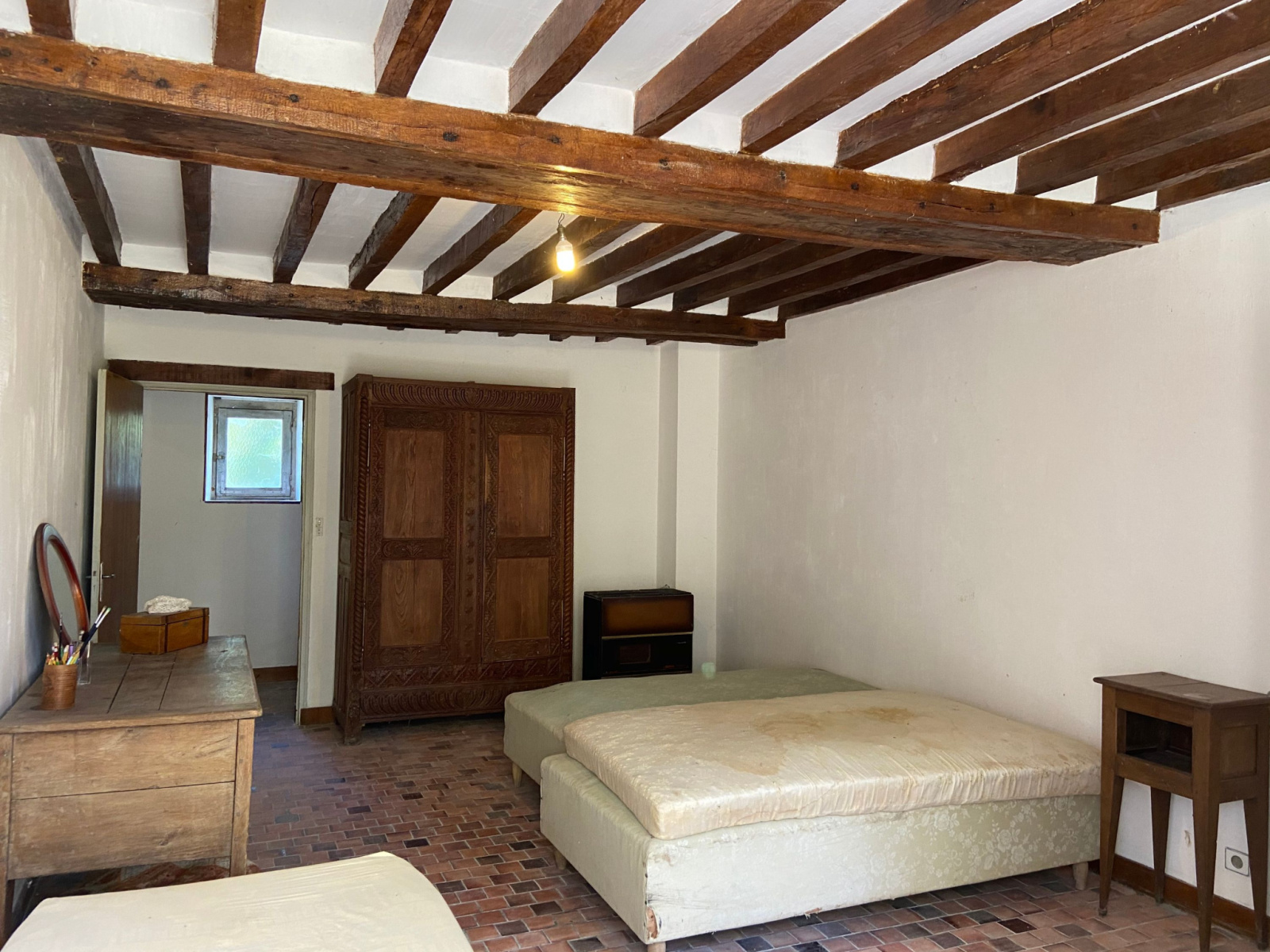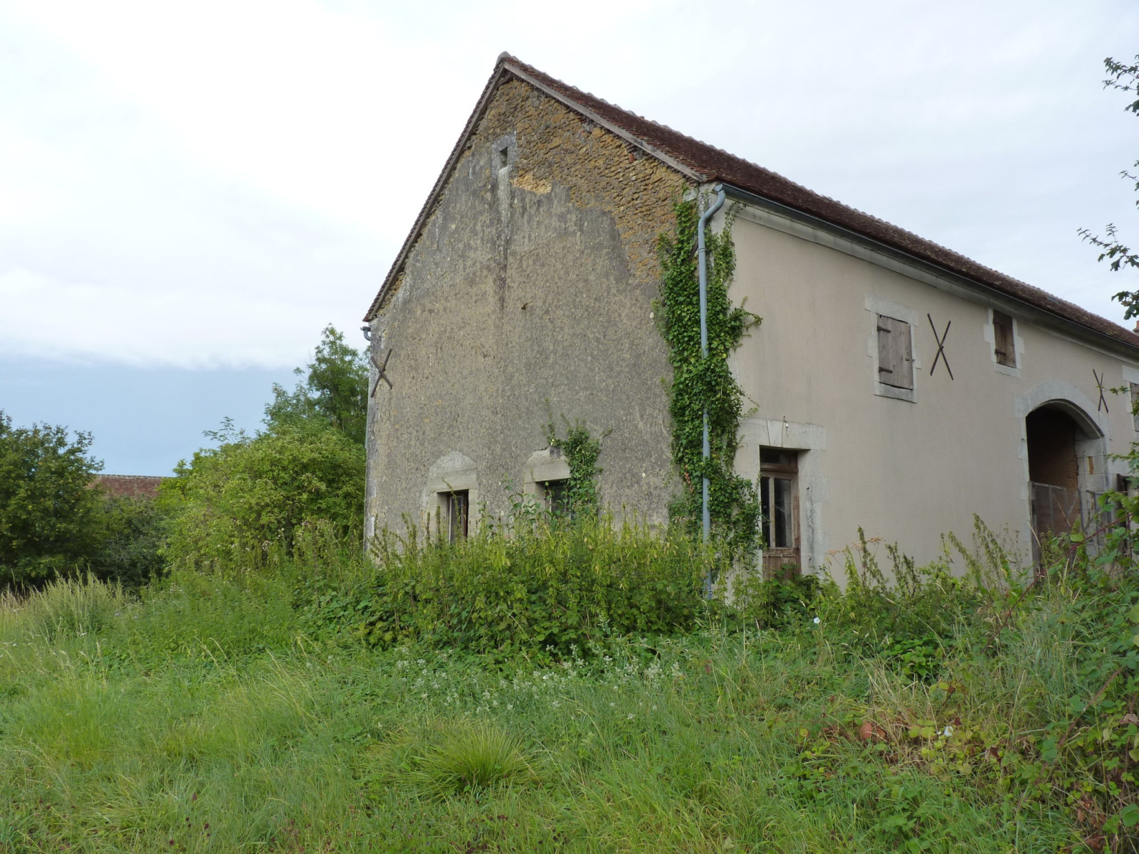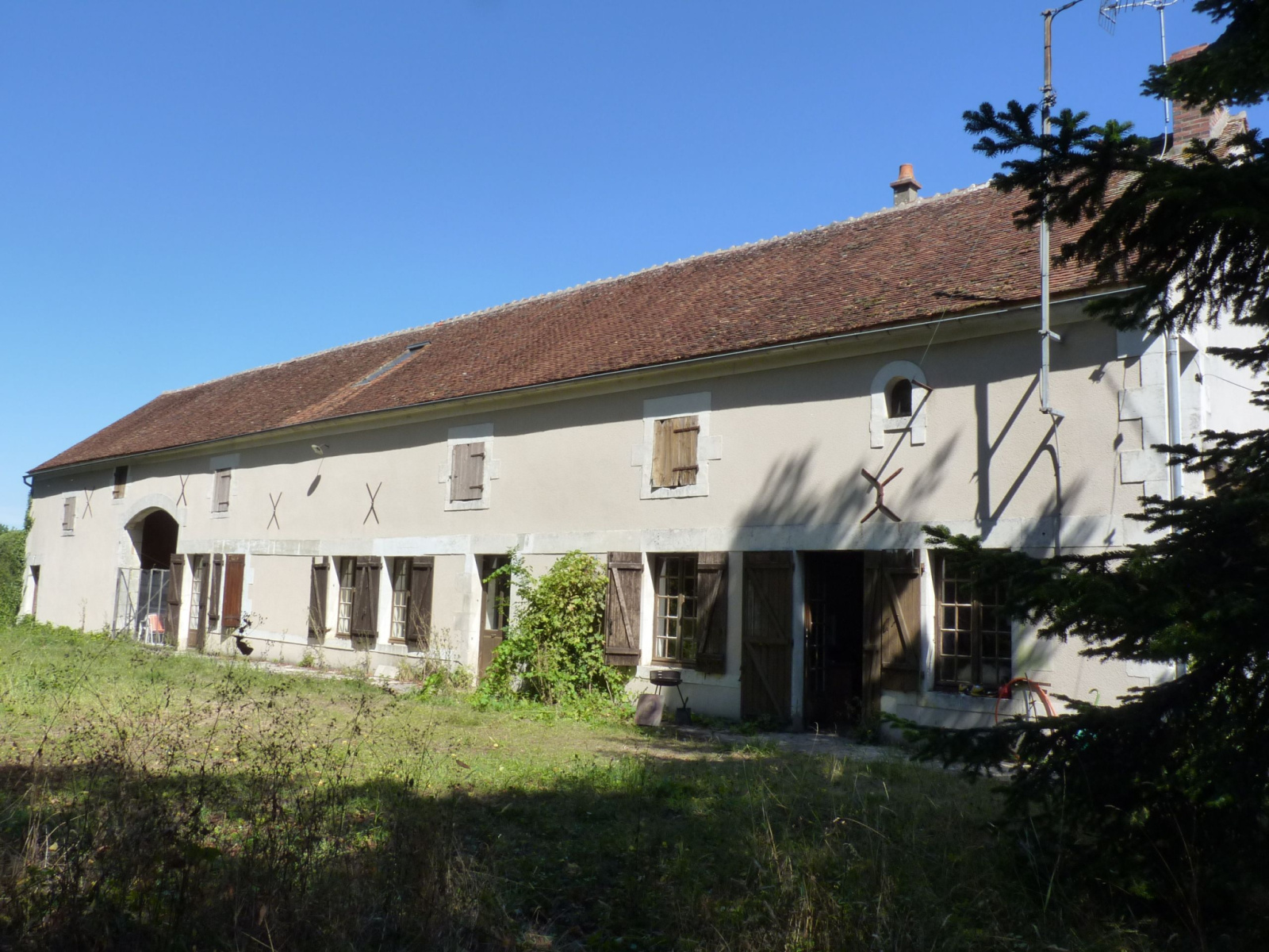 A Saints-en-Puisaye, très beau corps de ferme (1800/1850) couvert en tuiles de bourgogne, à aménager, sur 8700m2 de terrain. Ce bâtiment de 230 m2 en RdC peut passer à 460 m2 habitables grâce à son très beau potentiel à l'étage, en partie en tommettes anciennes et sa majestueuse charpente (5,30 m de hauteur au faîtage). Toutes les ouvertures sont habillées en pierres de taille. La toiture est en très bon état. Le terrain est en partie arboré avec puits. Idéal pour gros projet familial, ou gîte et chambres d'hôtes, ou accueil d'enfants, stagiaires, etc... A VOIR VITE ! CRTBOURGOGNE.FR Ref : 504 PRIX : 190 000 € FAI TTC (dont 10 770 € d'honoraires charge Acquéreur, soit 179 230 € Net Vendeur). www.crtbourgogne.fr