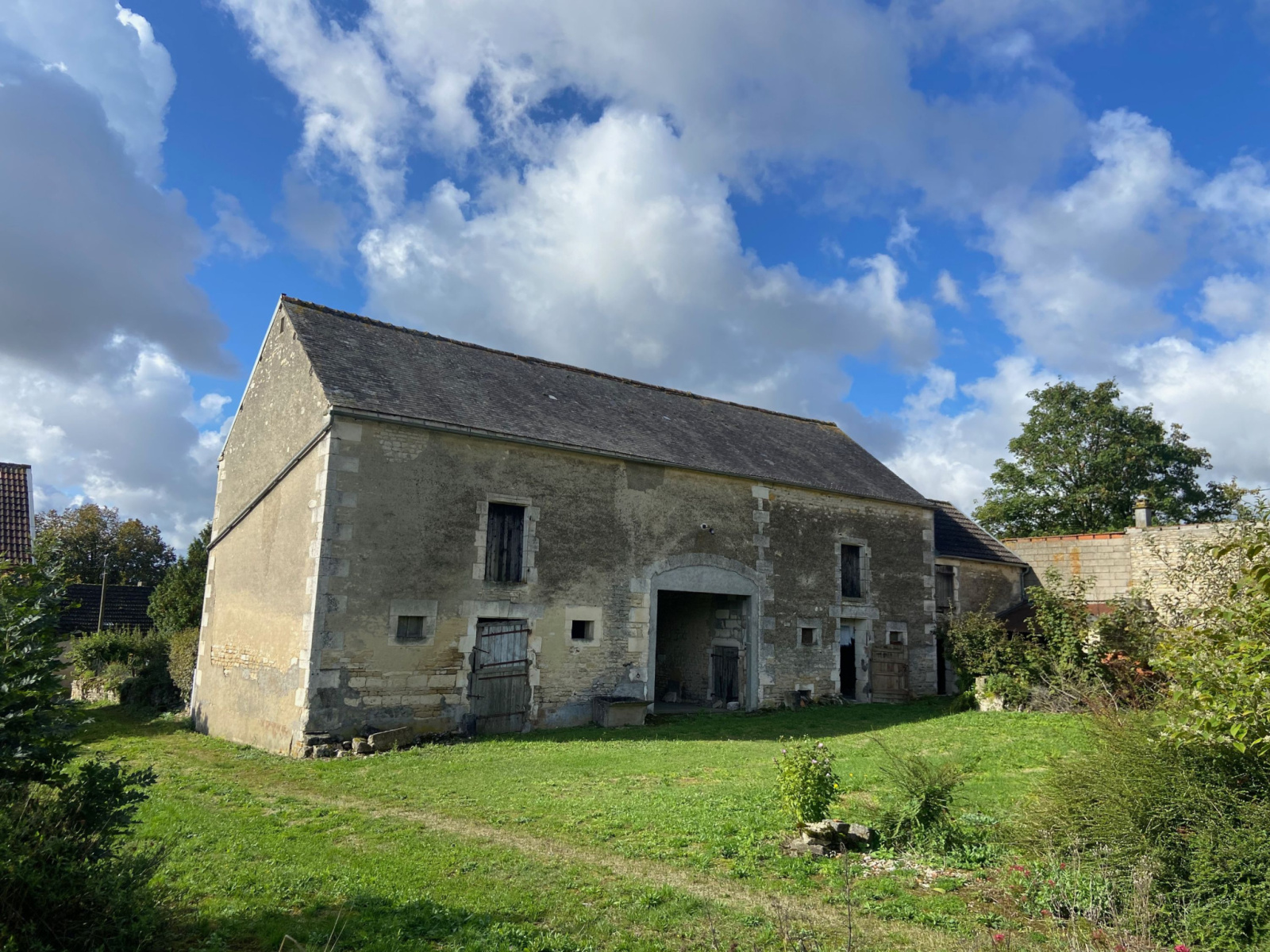 A 10 mn de OUANNE, TAINGY, Corps de ferme et ces dépendances avec bel espace de stockage, une maison d'habitation à rénover avec potentiel d'agrandissement. - Maison ancienne d'habitation de 60 m2 comprenant au Rez de chaussée : Entrée sur cuisine/salle à manger, 2 chambres, une pièce, salle d'eau/Wc. Grenier au dessus - Dépendances attenantes à la maison : une Grange de 49 m2 avec grenier, une grande dépendance de 138 m2 environ communiquant avec la grange : remise (22 m2), granges, garage ouvert (30 m2), étable/poulailler(54 m2), écurie (32m2), 2 caves voûtées (20 m2), vinée. - Cours, jardin, potager, 2 citernes d'eau, le tout sur un terrain de 1316 m2